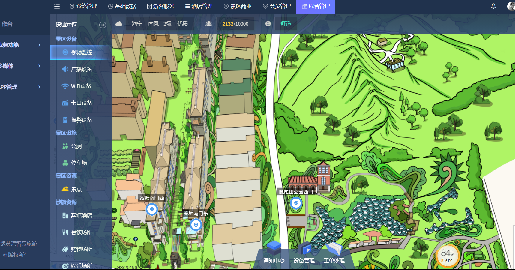 1、景區內信息化控制應用可視化集成(視頻監控、設備設施等);
